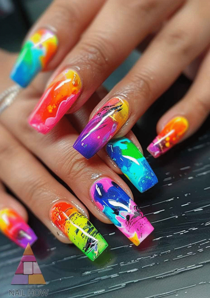For the creative soul, this is a must-try. Use swirls, dots, and splotches of different colors to create a unique, abstract pattern on each nail. The beauty of this style is that no two nails have to be the same, making it a fantastic way to express your personality and let your imagination run wild.